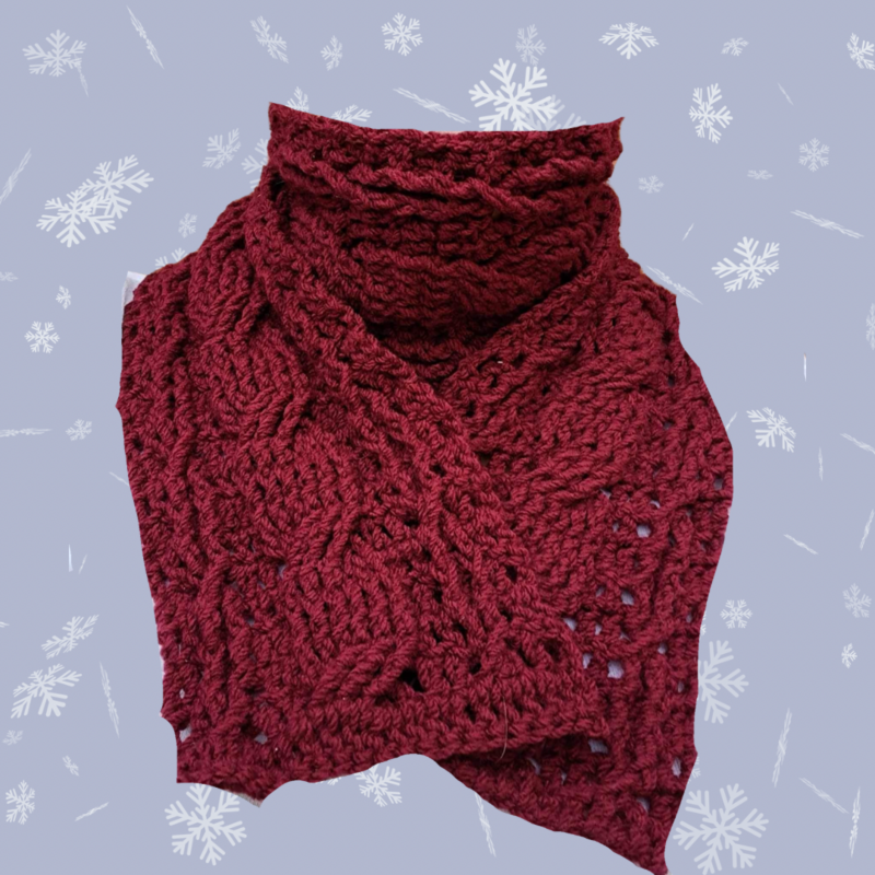 Das Muster wird die ganze Zeit wiederholt und ist sehr einprägsam. Dank der Verwendung von warmer, dicker Winterwolle ist der Schal ruckizucki fertig gehäkelt und bereit in der eisigen Winterlandschaft ausgeführt zu werden.