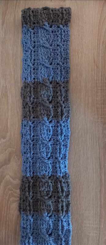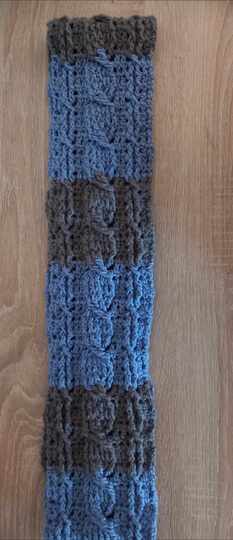 Mein Beispielschal ist 1,20m lang und 0,14m breit. Er lässt sich allerdings ohne Probleme endlos verlängern.
