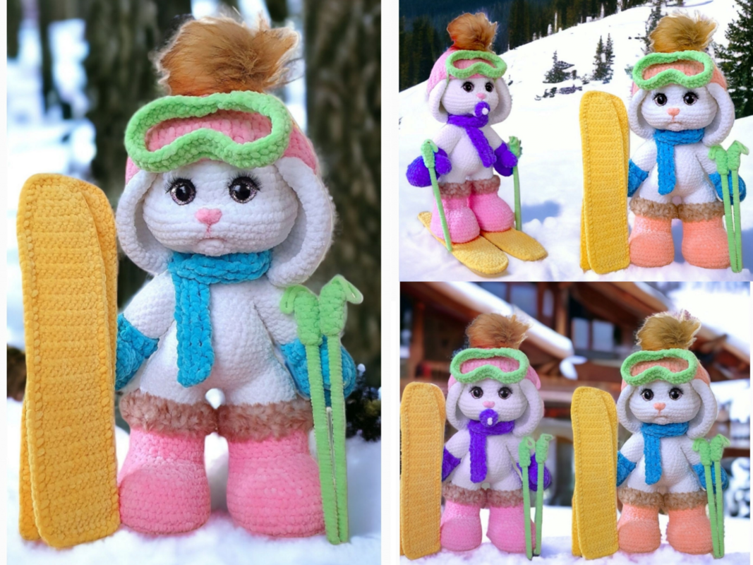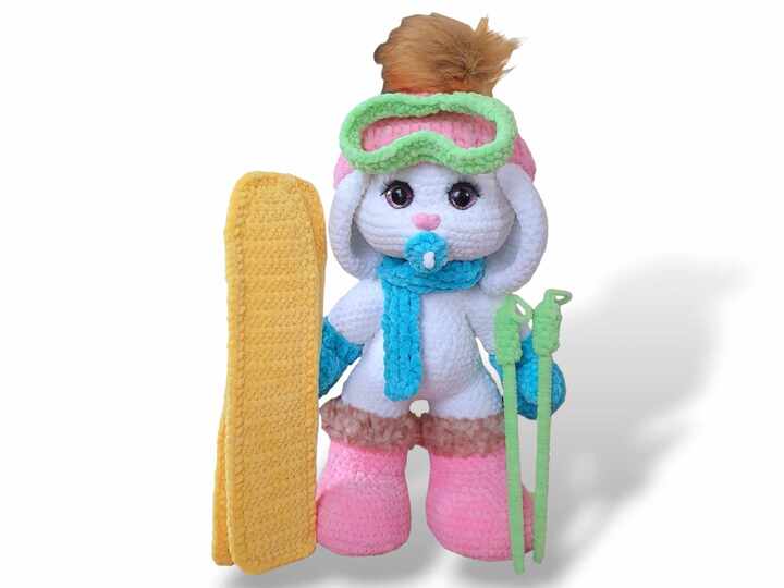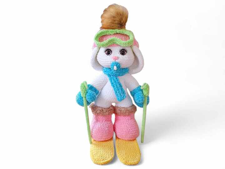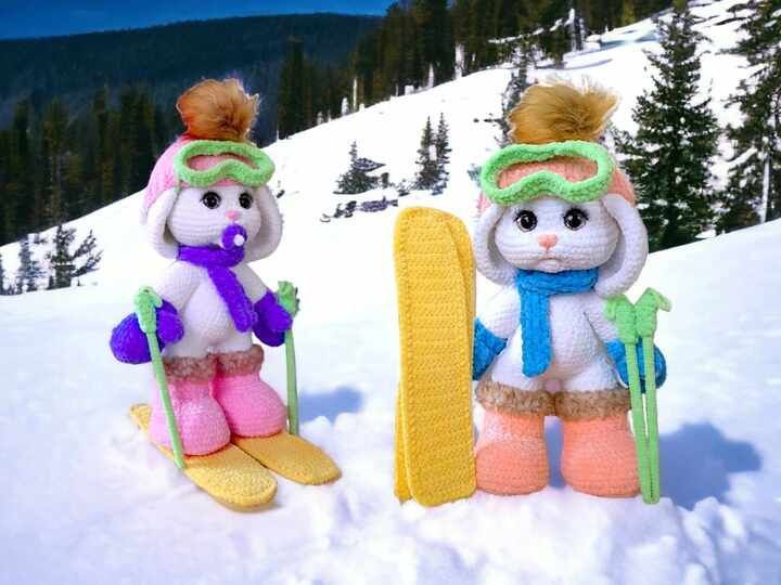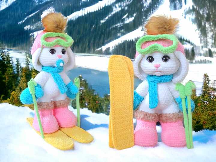 With the help of these step-by-step instructions, you can easily crochet a cute baby ski bunny. The instructions also include a description of how to make all the accessories.