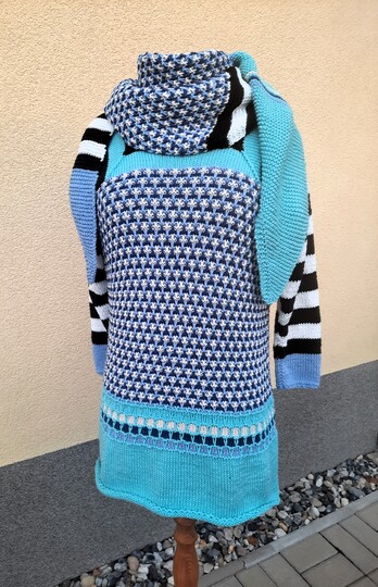 Besonders schön wirkt der Pullover in leuchtenden, kontrastierenden aber auch dezenten Farbkombinationen von 4 bis 6 oder mehr Farben.