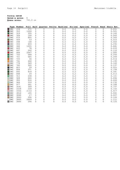 In the diagram, embroidery various colors of thread are indicated by different symbols or colored squares.
