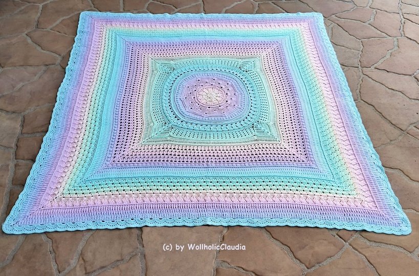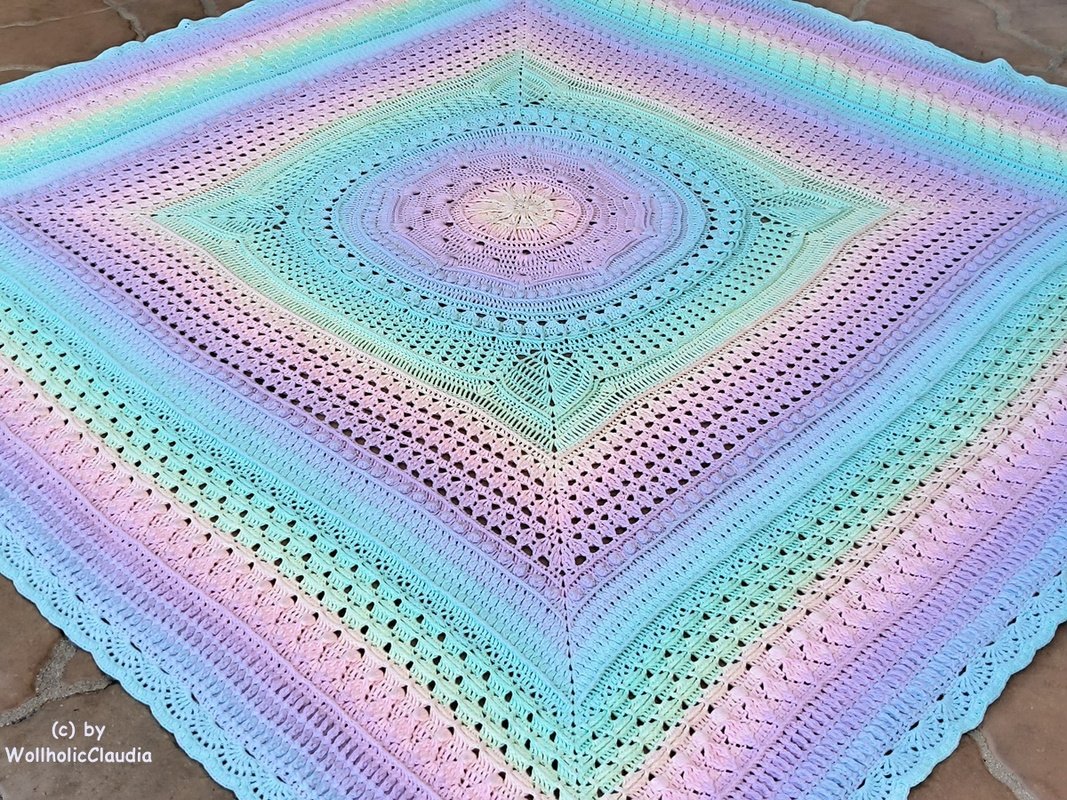 Die Decke Olympic wird komplett in Runden gearbeitet, also kein lästiges wenden. Somit ist sie auch perfekt geeignet für alle Farbverlaufsgarne. Sollte dir das Ergebnis noch nicht groß genug sein, kann man sie im vorletzten Teil beliebig erweitern.