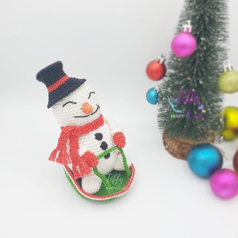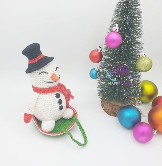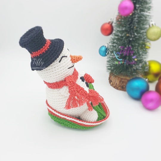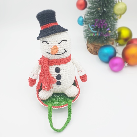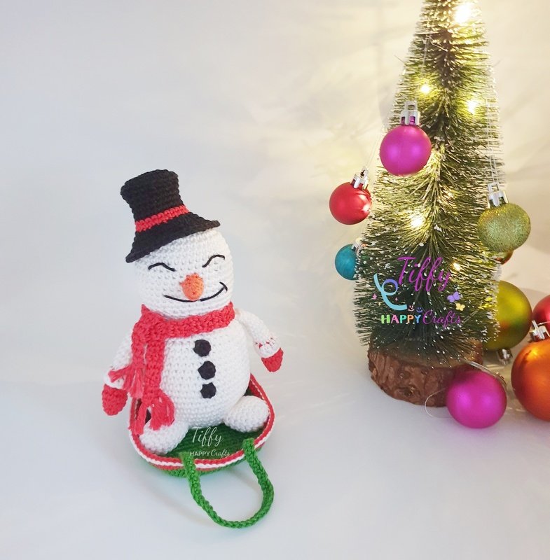 The happy snowman with a sleigh is easy to follow with lots of photos. However, you need to know the basic crochet stitches. This pattern does not include crochet lessons. With the help of these instructions you will be able to create a beautiful and unique handmade gift.
