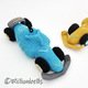 This pattern (US terms) will guide you to crochet a Formula 1 Racing Car, as shown in pictures, made using sport weight cotton yarn and crochet hook size C (2,5 mm).
