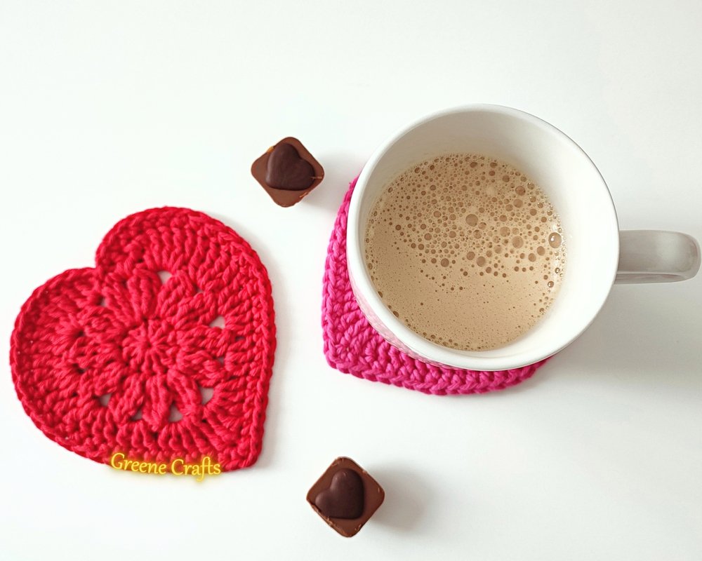 The hearts can be used as coasters, ornaments (as a garland), or even as an applique, depending on the yarn weight and hook size you may use.