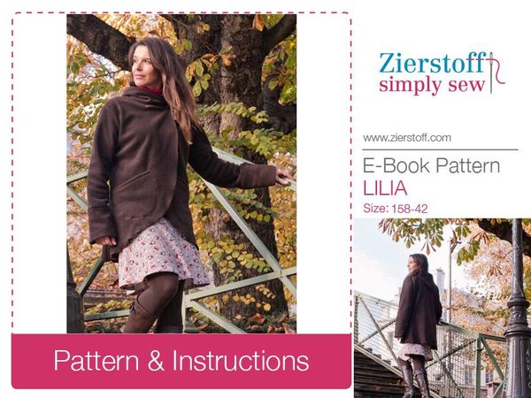 Sewing instructions and pattern for LILIAs jacket, sizes 158 – women´s 42 / Kids M – women´s M/L.