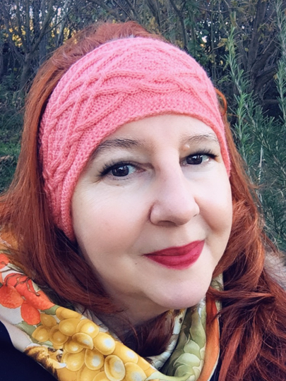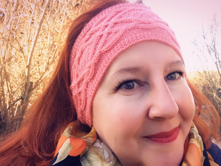 Mariette is the smaller version of Maria, a headband decorated with a bold cable pattern going around the head. It is knitted with a thinner yarn and smaller needles so that the headband is 9 cm / 3.5‘‘ wide instead of 12 cm / 4.75‘‘.