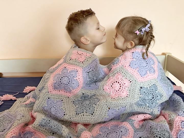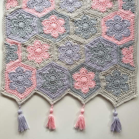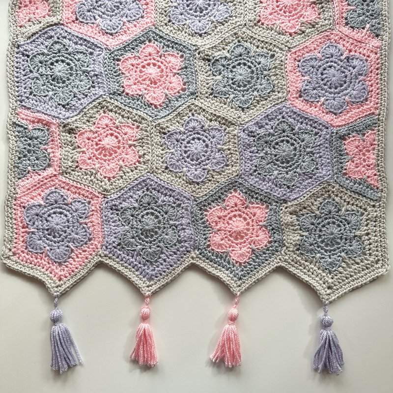 The completed blanket: 31” x 62” / 79 x 158 cm AFTER BLOCKING
