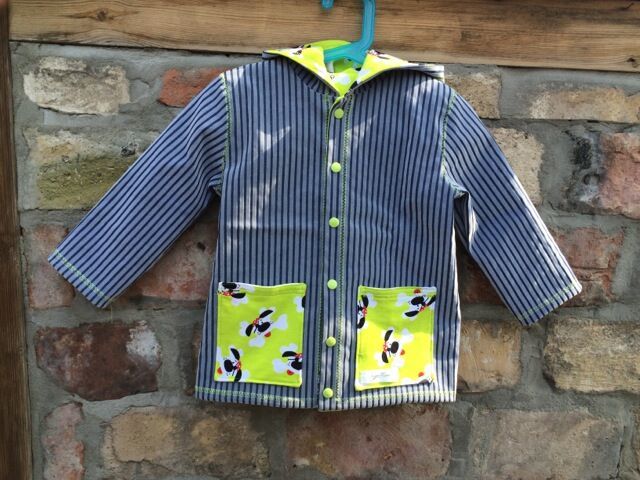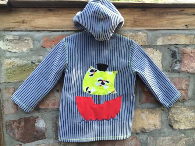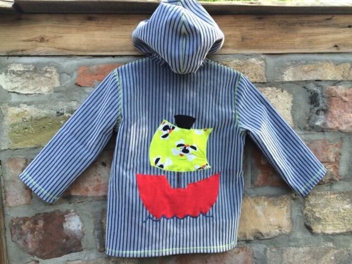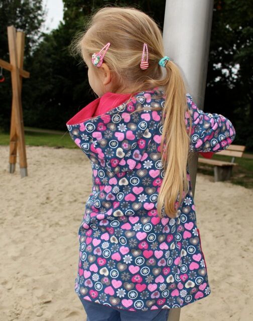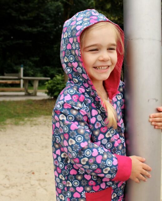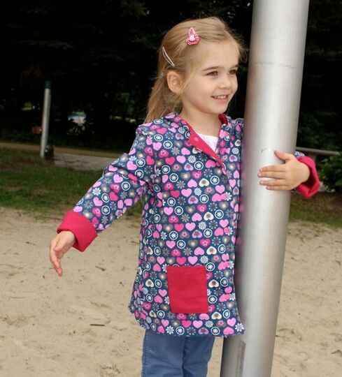 Wearing this jacket your child will for sure be the star in kindergarten or school. Play around with fabrics and sew a special unique model. We are explaining to versions within the pattern. A simple and reversible jacket. Absolute beginners should start with the simple jacket. Advanced sewers / seamstresses can be creative and play around with decorative stitches etc. Or furnish the jacket with an appliqué. Please have a look at our illustrated example. The appliqué does not originate from us, though. You will find many online.