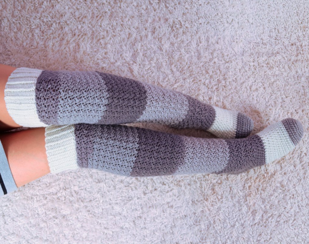 Häkelanleitung (PDF) Gestreifte Kniestrümpfe