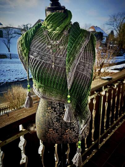 However, it is also possible to crochet the shawl with another yarn cake or yarn cake with a similar yardage.