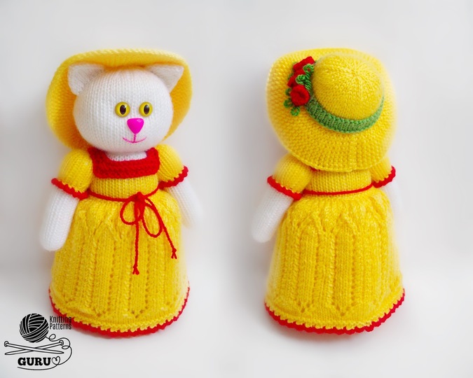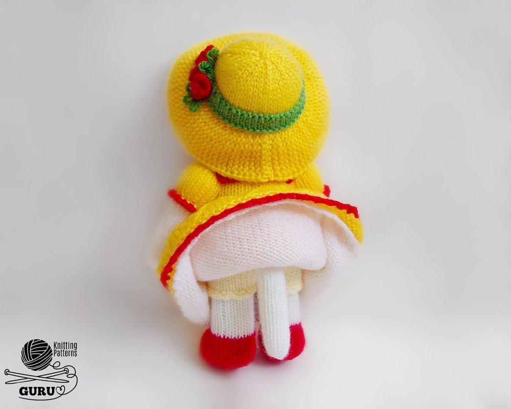 The toy is made of Nako Bambino yarn (sport weight; 25% wool, 75% acrylic; 130m per 50g skein).