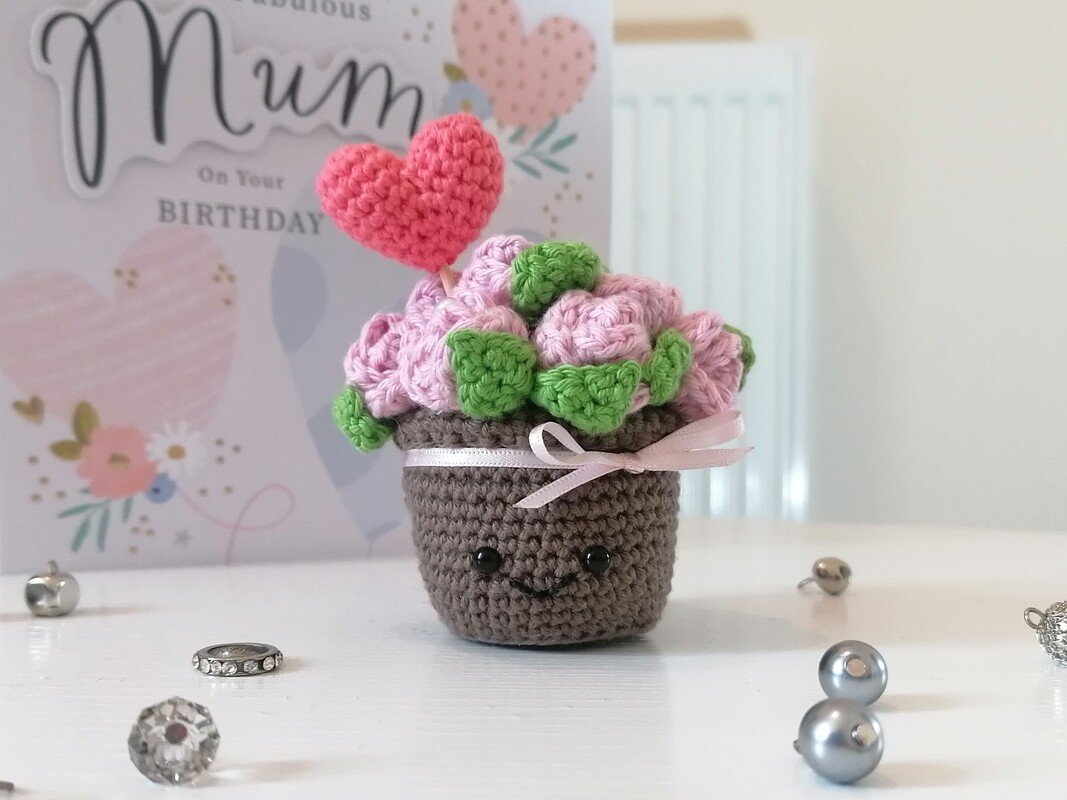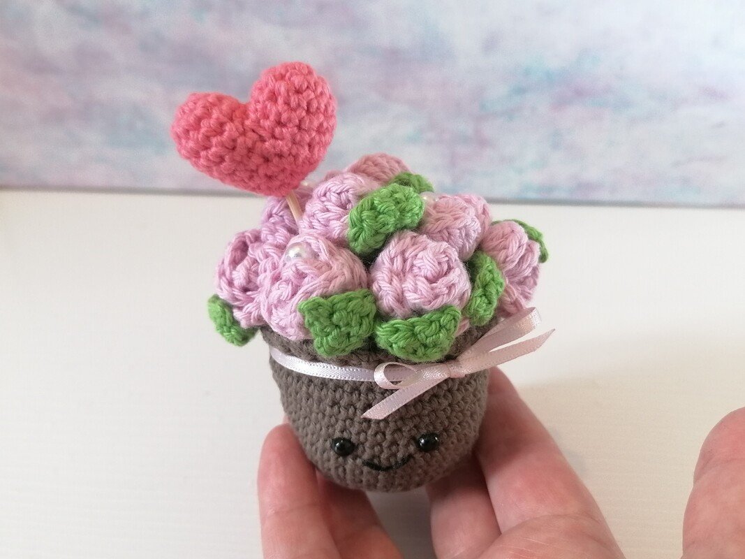 Unleash your creativity and bring a touch of beauty into your world with our enchanting Crochet Flower Bouquet Pattern: Pot of Roses with Heart. This captivating DIY amigurumi pattern seamlessly combines the art of crochet and floral elegance, providing you with step-by-step guidance to create a bouquet of crochet flowers. The pattern includes a charming pot of roses and a delicate crochet heart, making it an ideal gift for your closest friends or a delightful surprise for birthdays, Valentine's Day, or Mother's Day.