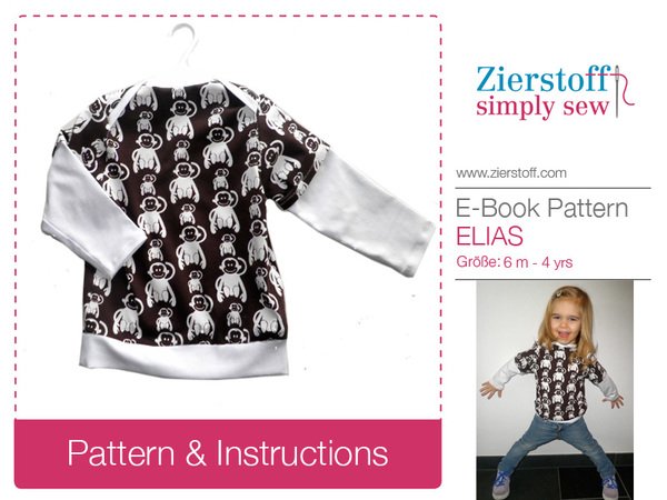 eBook and pattern for ELIAS´T-shirt / long sleeve with an American neckline, sizes 62-104 / 6 mo. – 4/5 yrs.