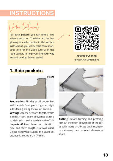 You can find the video instructions for the pattern on julianamartejevs. com under sewing instructions. If you have never sewn before, start by watching our sewing machine basics video tutorial. There you will learn about the components of a sewing machine and how to make your first seam.