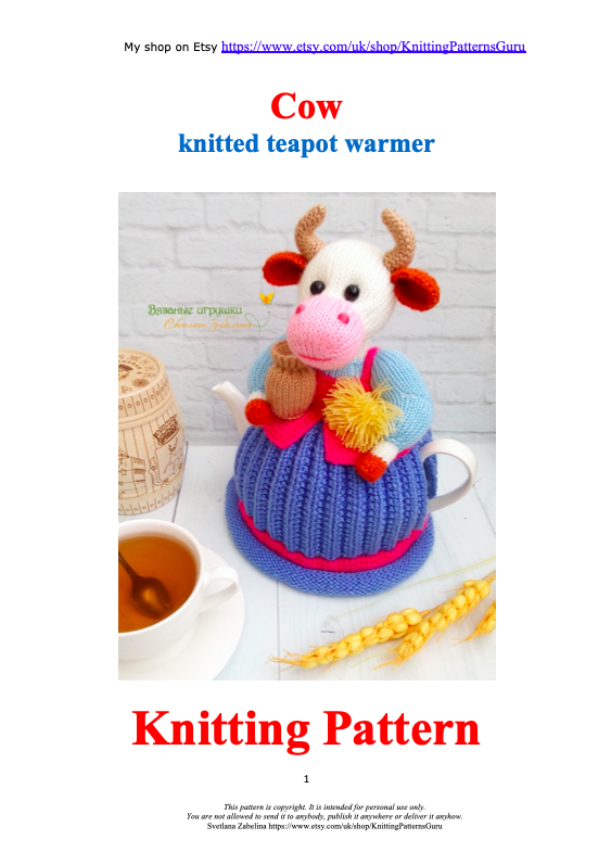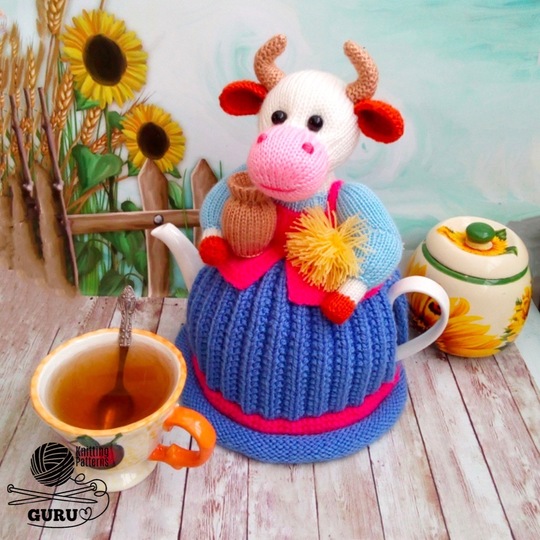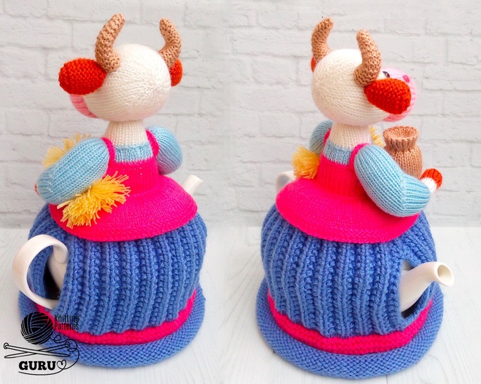 The teapot warmer made with suggested yarn fits Tudor Royal Sutton teapot (990 ml). You can make the teapot warmer smaller if work with one strand of yarn or choosing fingering yarn. Attention: if you choose fingering yarn or work with one strand of yarn, choose different size needles.