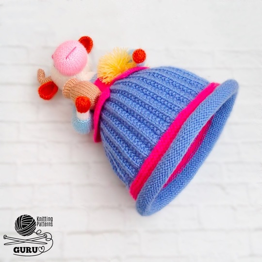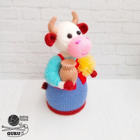 The skirt is worked on 3.0-mm (US 2/UK 11) knitting needles. The horns and ears are worked on 2.0-mm (US 0/UK 14) knitting needles. All the other parts are worked on 2.5-mm (US 1/UK 13) knitting needles.