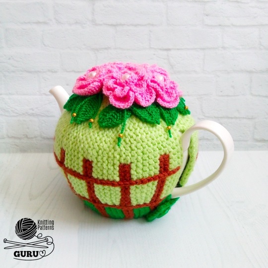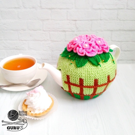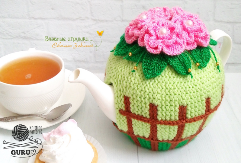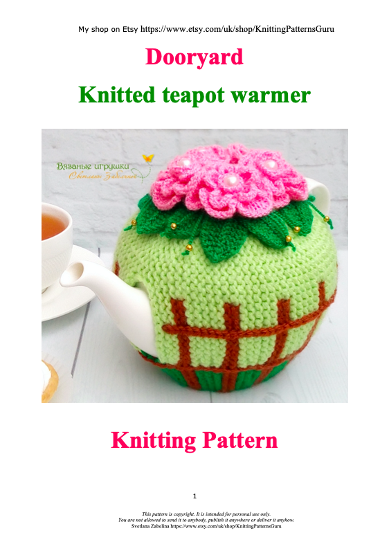 The teapot warmer made with suggested yarn fits Tudor Royal Sutton teapot (990 ml). You can make the teapot warmer smaller if work with one strand of yarn or choosing fingering yarn. Attention: if you choose fingering yarn or work with one strand of yarn, choose different size needles.