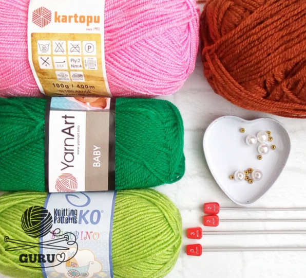 I used YarnArt Baby, Nako Bambino Marvel, Kartopu Gonca to make the pain part and Kartopu Super Perle to make leaves and flowers.