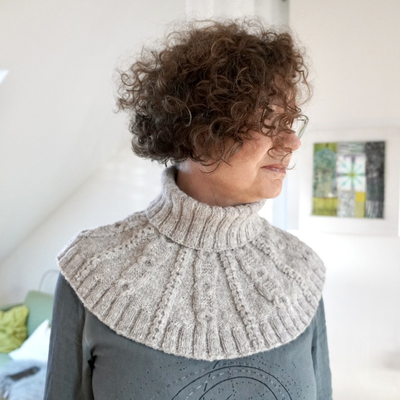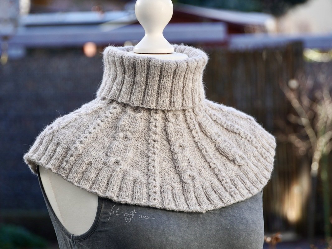 It’s a shoulder warmer, cowl, collar, neck warmer and it is so much more, because it is also a beautiful accessory and it is super practical: Just slip it on and you're done!