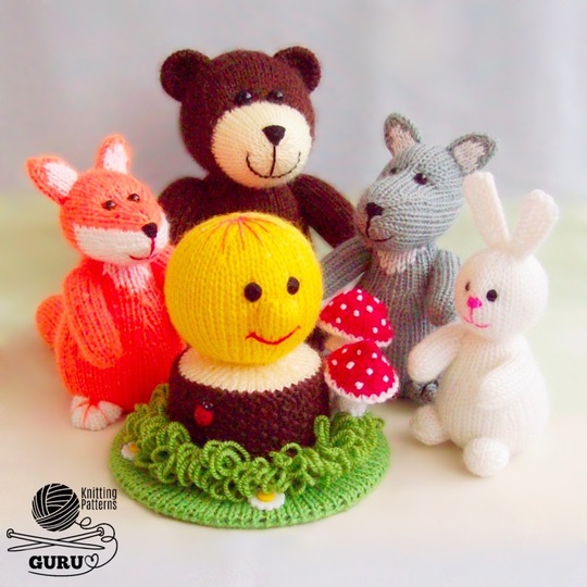 The bear is 17 cm tall, the fox and wolf are 14 cm tall, the hare is 13 cm tall, the frog and mouse are 12 cm tall.