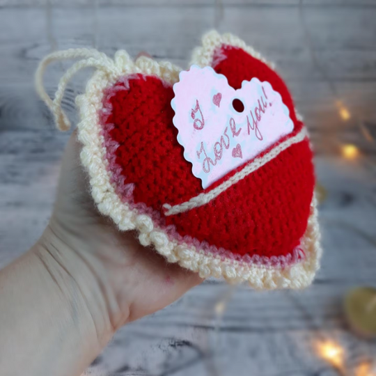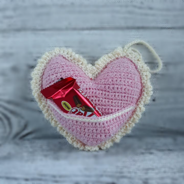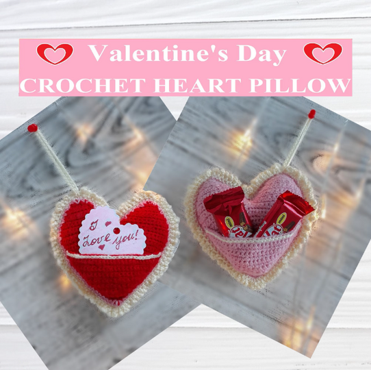 This crochet heart pillow, hand-crocheted with love, is a great Valentine ornaments. Valentine Pillow will be an original and interesting decor of the wall. The heart pillow has 2 pockets on both sides. To please your loved ones, you can put sweets in one pocket, and a