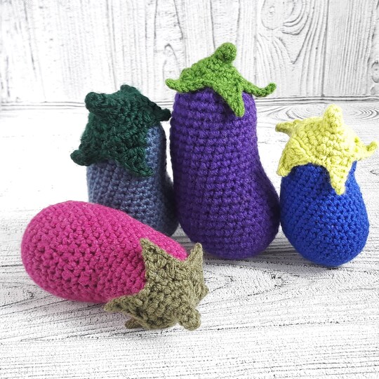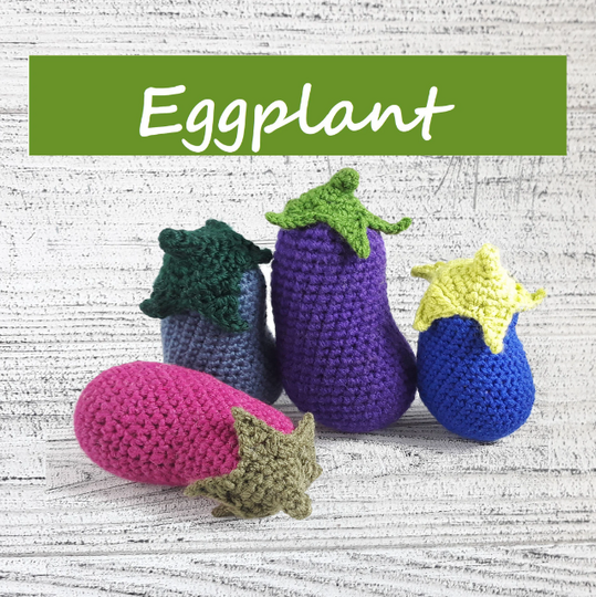 The cute crochet pattern PDF file contains 7 pages of detailed description of how to crochet miniature eggplant.