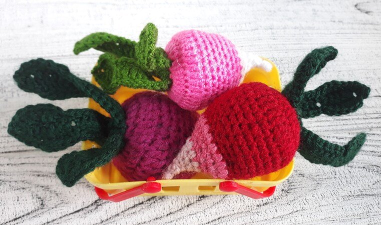 Every craftswoman can crochet such a red radish. To do this, it is enough to have basic crocheting skills. You can easily do this if you know how to perform the main types of loops: