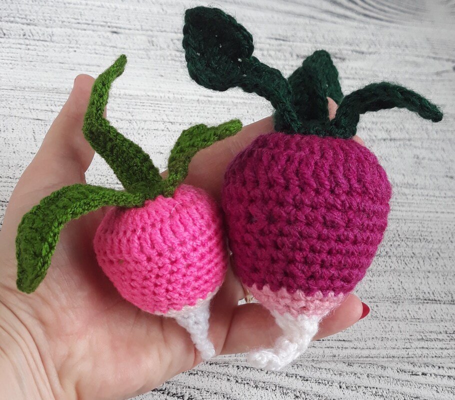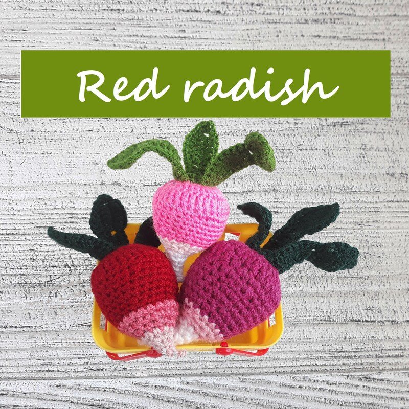 This radish plush, hand-crocheted with love, is a great Montessori baby toys and educational play food for any child. Crochet food will be a great play kitchen toy or even an original decoration of the kitchen interior. In addition, by crocheting these fidget toys, you can top up the refrigerator, crocheted in my pattern.