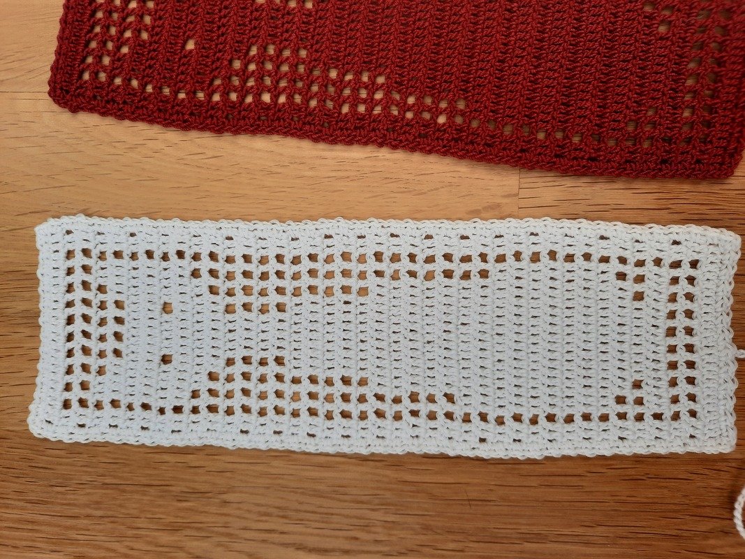 Luftmaschen, feste Maschen und Stäbchen werden verwendet