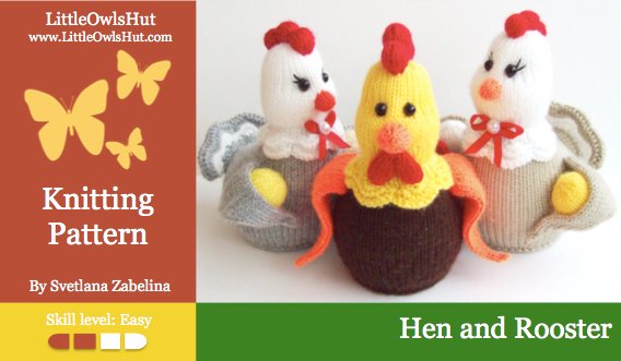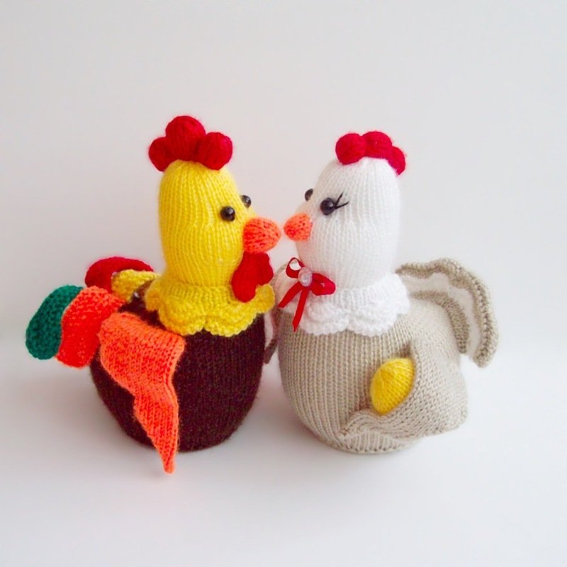 FINISHED SIZE: approx. Hen - approx. 17 cm/6.7 inches, Rooster – approx. 18 cm/7 inches