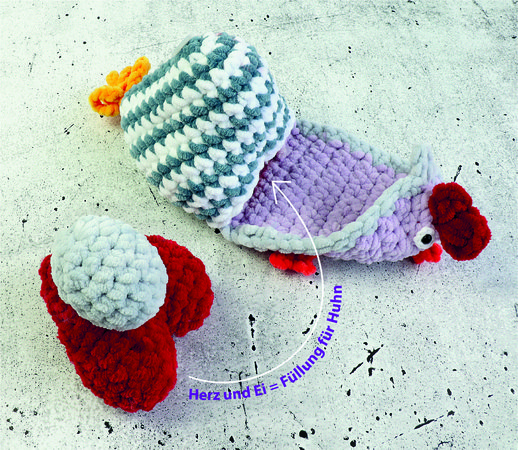 And the super cute little chicks in their eggshells are also included - the special feature here is that the wings are crocheted in directly. So you don't have to sew them on here either.