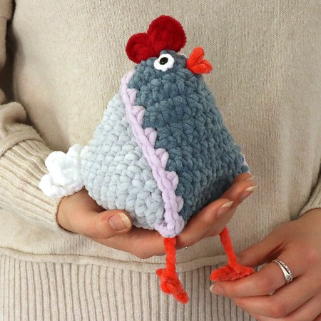 A wonderful weekend or evening project. The body is crocheted with single crochet stitches, the tail feathers and comb are crocheted directly to the body. The legs are joined together and are also worked in. All you have to do at the end is attach the beak and close a seam, otherwise no sewing is necessary (except for 1 button).