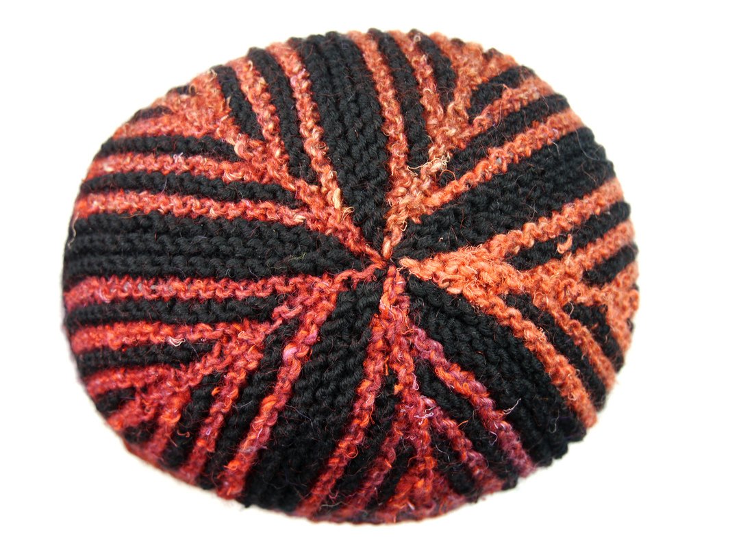 Art to wear! Typical elements from the Art Deco era transform this extraordinary cape and hat into real eye catchers. The brilliant NORO Silk Garden is set against a deep black merino wool, and the effect is so luminous it reminds me of lead glas windows. The pieces look great casual style with blue or black jeans, but can be fantastic companions to your Little Black Dress as well.