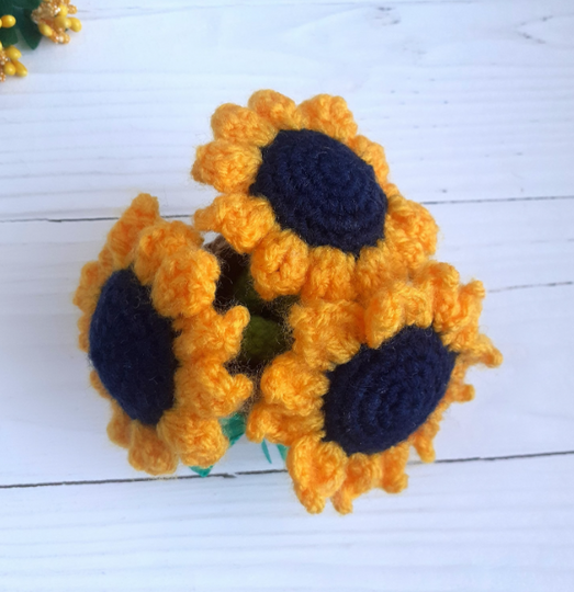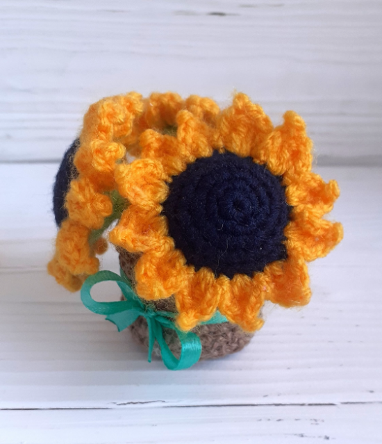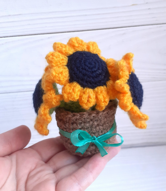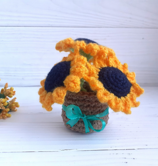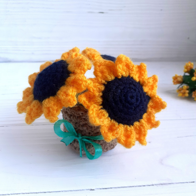 This Sunflowers basket is the perfect crochet decor for home. In addition, this is a great the mini Easter basket. Sunflowers crochet look bright, festive and spring-lake. Sunflowers in vase will be a wonderful souvenir for mom, grandma or girlfriend.