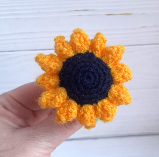 The crochet pattern PDF file contains 8 pages of detailed description of how to crochet sunflowers and basket.