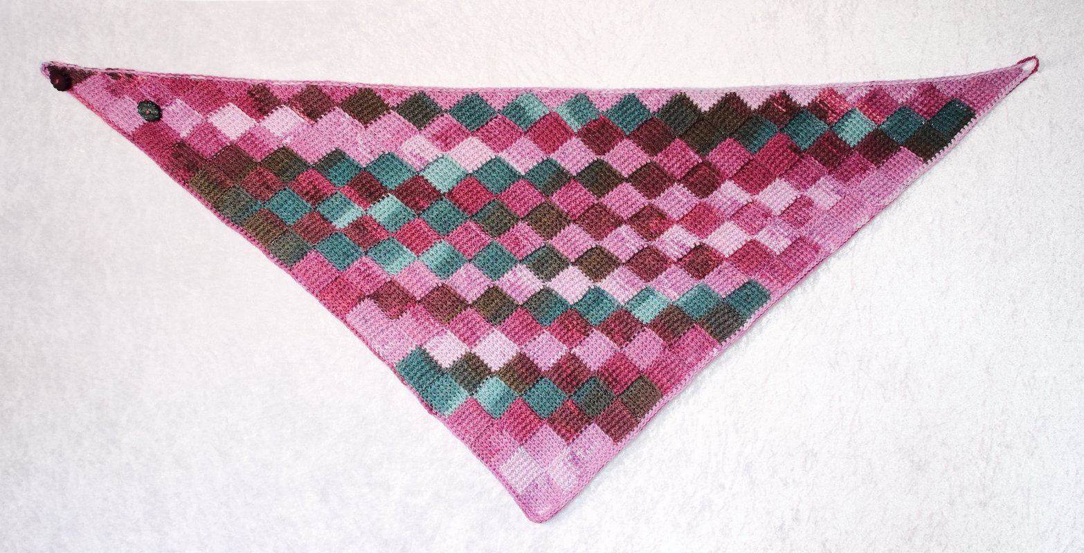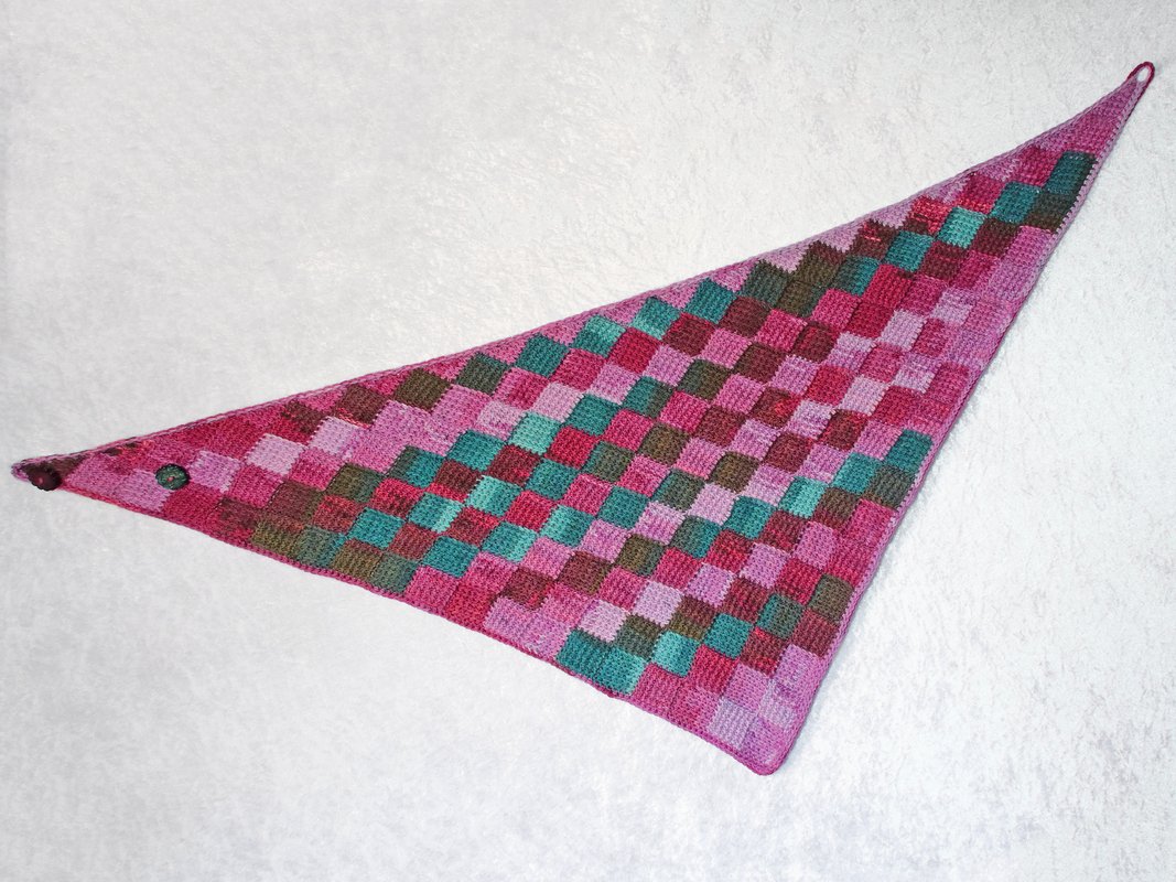 Das Tuch wird in einem Stück gehäkelt. Bis auf den Anfangs- und Endfaden gibt es nichts zu vernähen. :-)