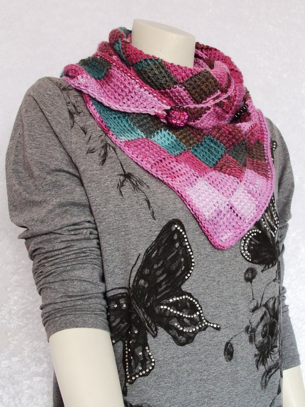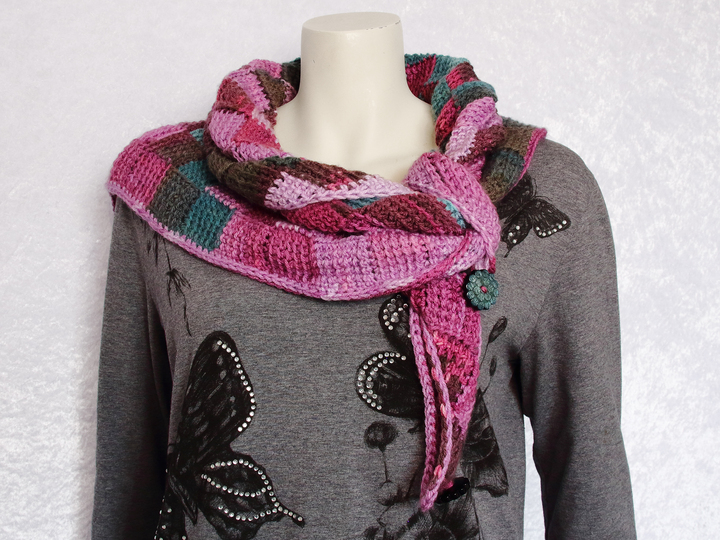 The "Afghan Diamonds" triangular shawl is not only a fashion statement, but also a practical and versatile accessory. The combination of Tunisian crochet and shorter colour gradients gives the shawl a unique touch. Create your own personal masterpiece and add a personal touch to your style.
