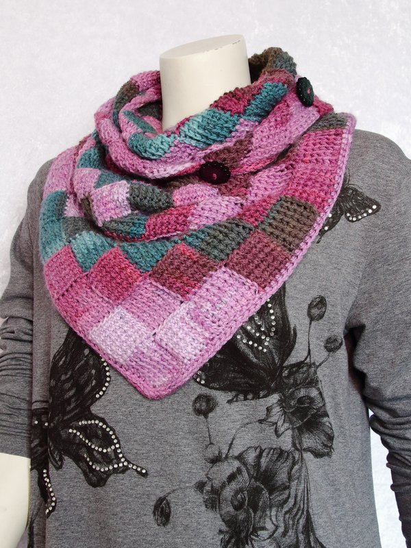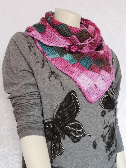 This stylish accessory is made with a standard crochet hook and is perfect for using wool with shorter gradients.