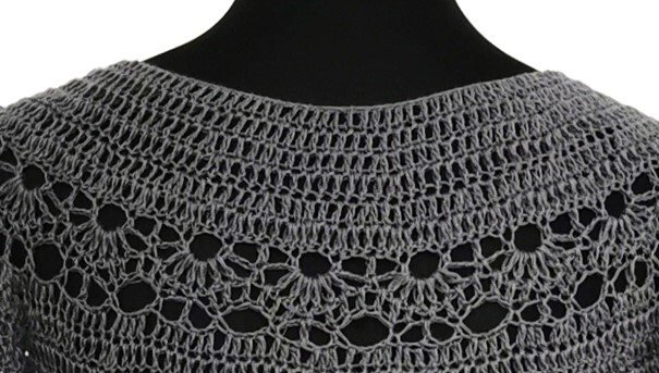Der Pulli/das Kleid werden mit Rundpasse von oben in einem Stück gehäkelt und können so ganz leicht an jede Größe angepasst werden. Die Ärmel werden extra direkt angehäkelt.