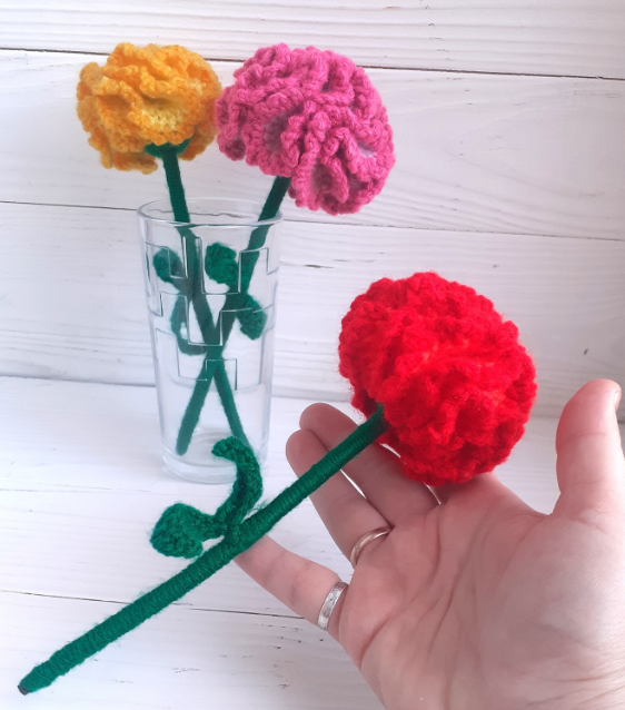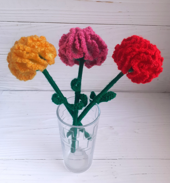 These crochet carnations are the perfect crochet flower decor for home. In addition, this is a great gaming decor or Easter table decor. Carnations flower look bright, festive and springlake. Crochet flowers will be a wonderful souvenir for mom, grandma or girlfriend. Carnations plants will decorate the house and give a sunny mood.