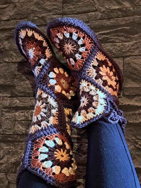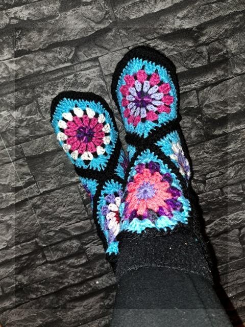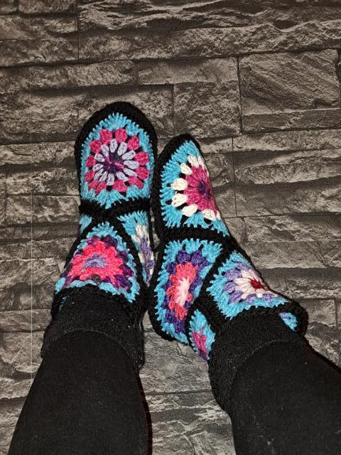 Crocheting this slippers is relatively easy - but basic knowledge such as chain stitch, double crochet stitch, single crochet stitch & slip stitch etc. are required.