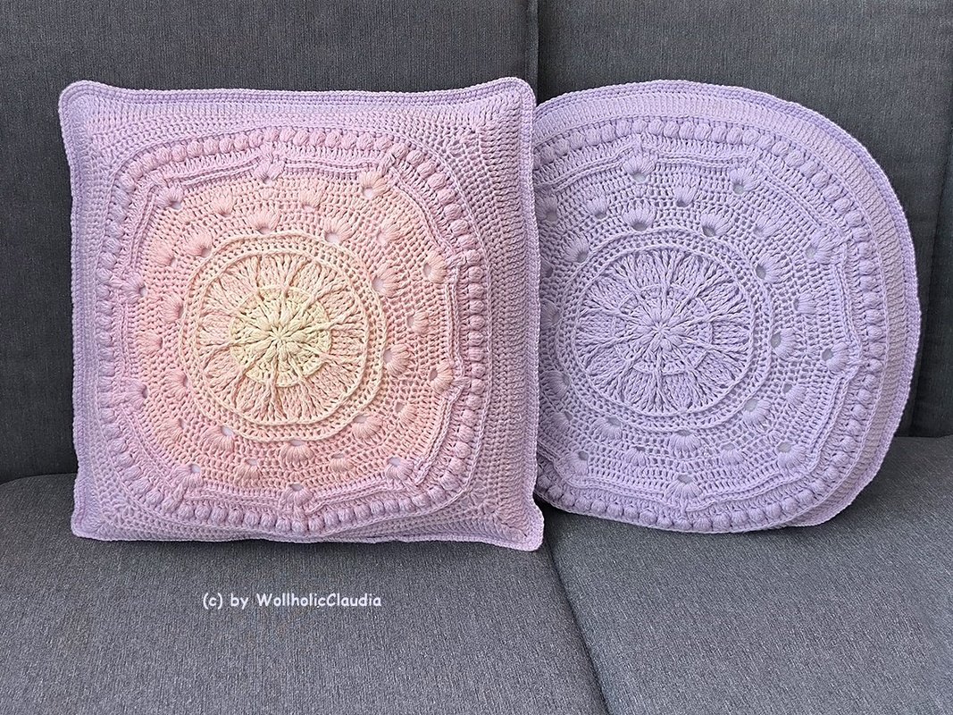 Man bekommt gleich 2 Varianten, einmal für ein rundes Kissen und einmal für eine eckige Version.