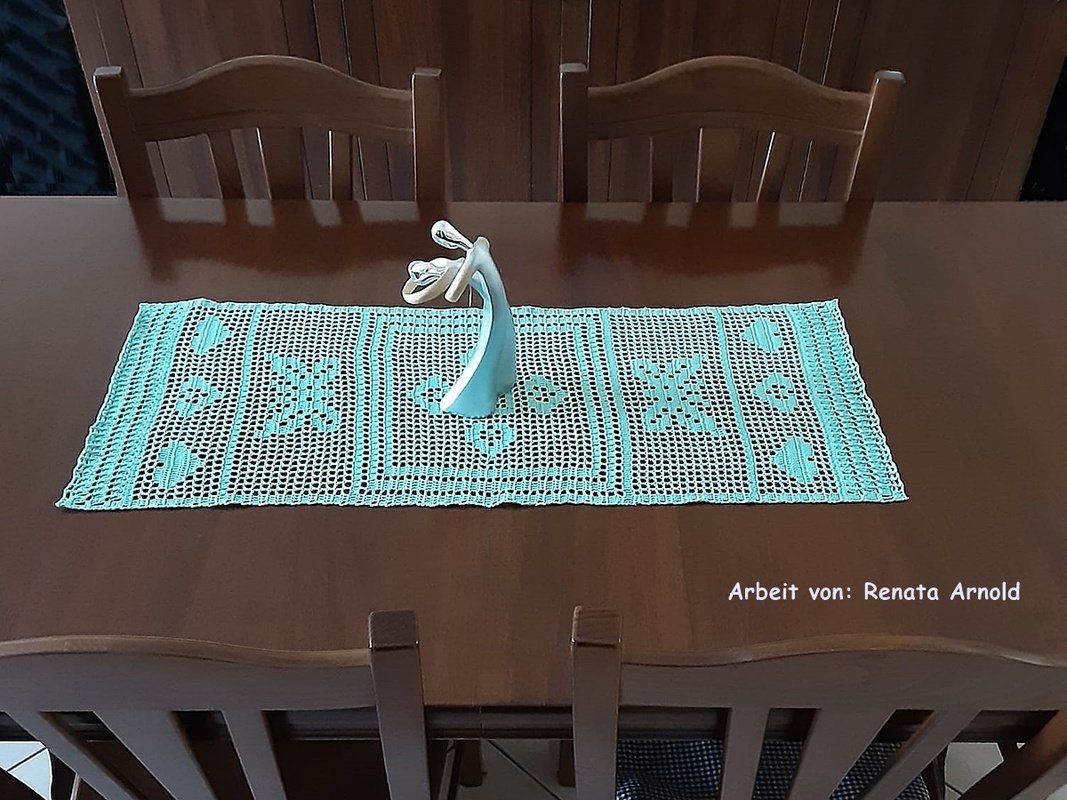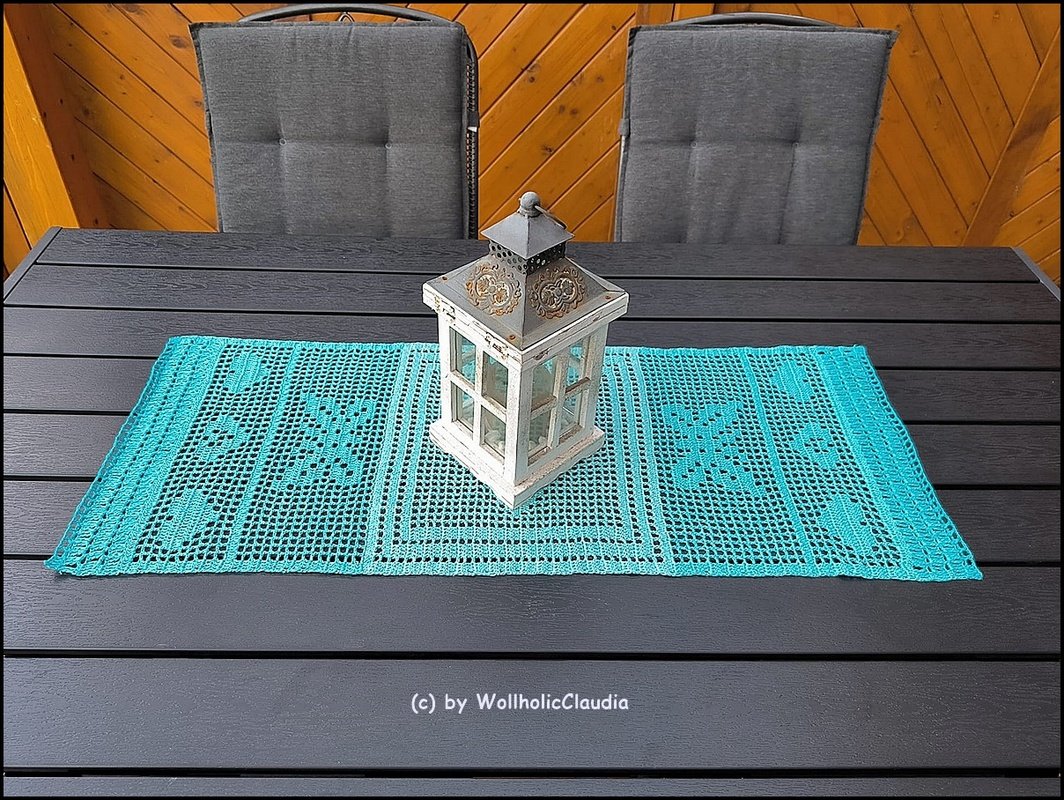 Dieser wunderschöne Läufer ist ein Mix aus Filethäkeln und dem herkömmlichen häkeln. Ein toller Hingucker für drinnen oder draußen.