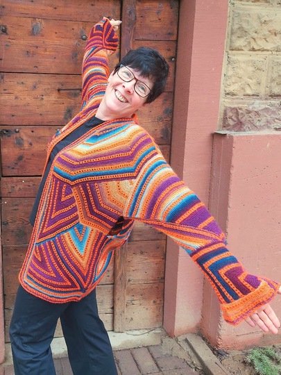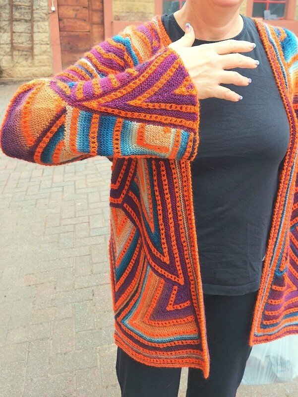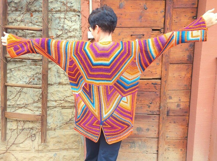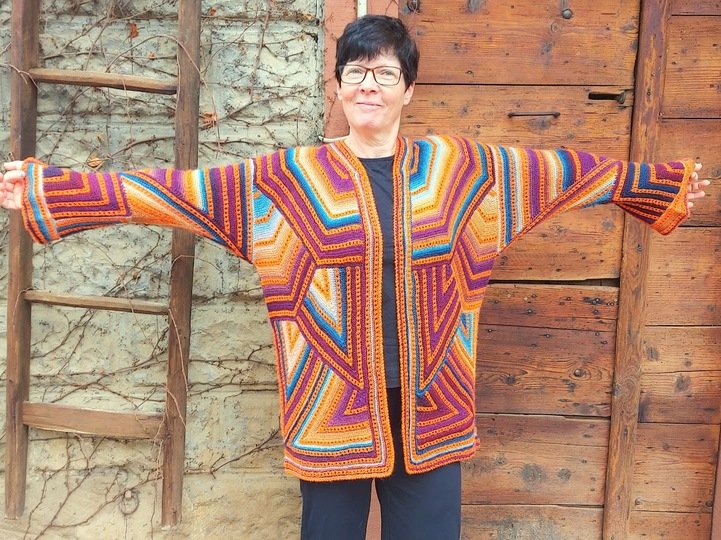 Karlos Nr.5 ist eine crazy Strickjacke in Patchworktechnik kombiniert mit einfachem Lochmuster.
