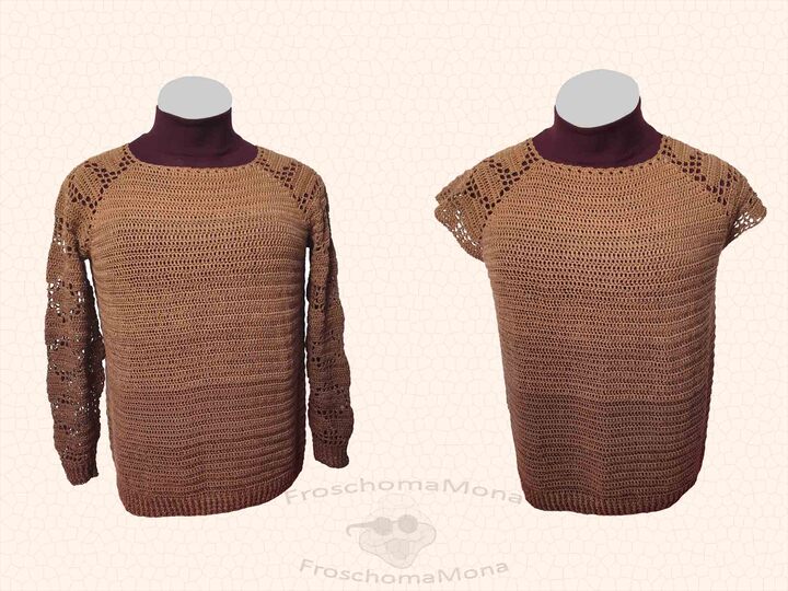 Ich beschreibe dir sehr ausführlich mit vielen Bilder, Häkelschriften und Zählmustern, wie du den langärmligen Pullover häkelst.