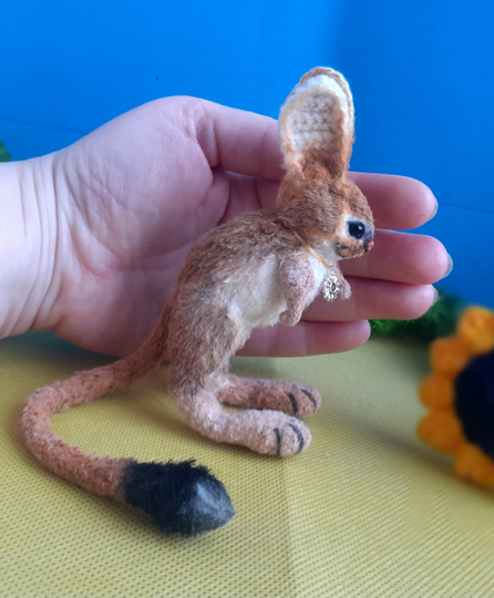 The crochet jerboa pattern PDF file contains 18 pages of detailed description of how to crochet realistic animal toy.