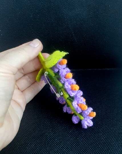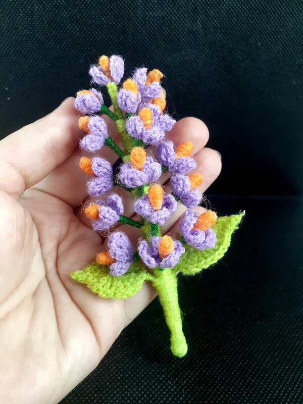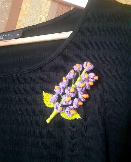 I suggest you crochet such a cute Lilac branch brooch. Crochet brooch can be pinned on a dress or on any other clothes, as well as on a bag. This Mother's day brooch is a great gift for mom, grandma, daughter, sister or friend. It could be an Easter brooch pin, as the mini crochet flowers are perfect for the Easter holiday in spring. In addition, crochet lilac branch excellent and original friendsgiving decor.