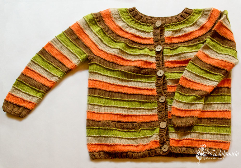 Diese Jacke erhält ihren Reiz durch die 4 miteinander kombinierten Farben. Eine kleine Tasche sorgt dafür, dass auch der Krimskrams immer mit kann. Durch Ändern der Farbe ist sie auch für Mädchen geeignet.