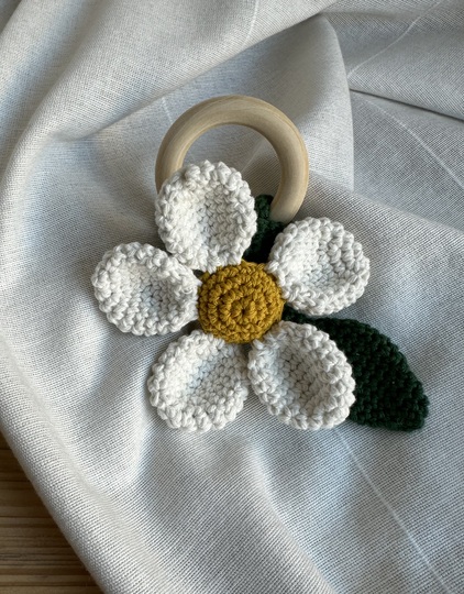 Häkelanleitung für den entzückenden Blumengreifling /-beißring! Diese DIY-Anleitung führt dich durch jeden Schritt, um dieses niedliche und funktionale Baby-Spielzeug selbst zu häkeln. Perfekt als Geschenk oder für dein eigenes kleines Bündel Freude! Der Blumengreifling ist nicht nur ein Spielzeug, sondern auch eine sensorische Erfahrung für Babys. Perfekt zum Greifen, Fühlen und Entdecken.